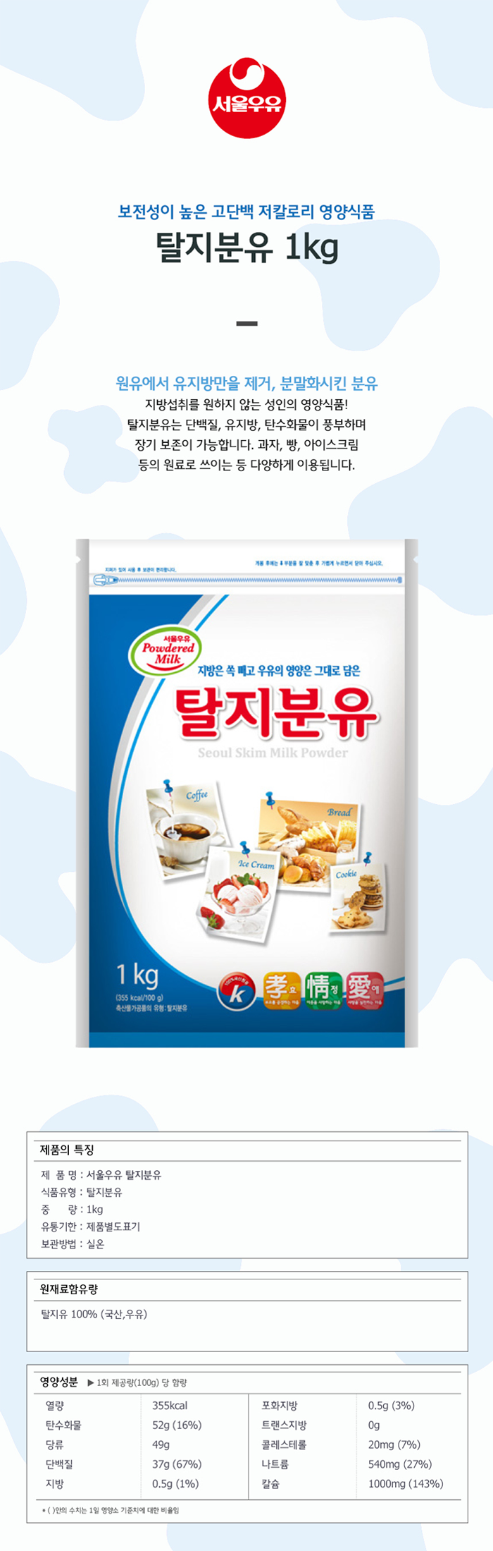- 탈지분유의 오랜 지존, 대용량 1kg