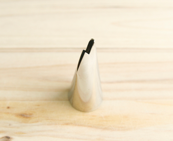 짤주머니에 끼워, 깍지의 중간쯤 펜으로 표시를 한뒤, 가위로 짤주머니의 앞부분을 오려내 타이트하게 끼워 사용합니다.