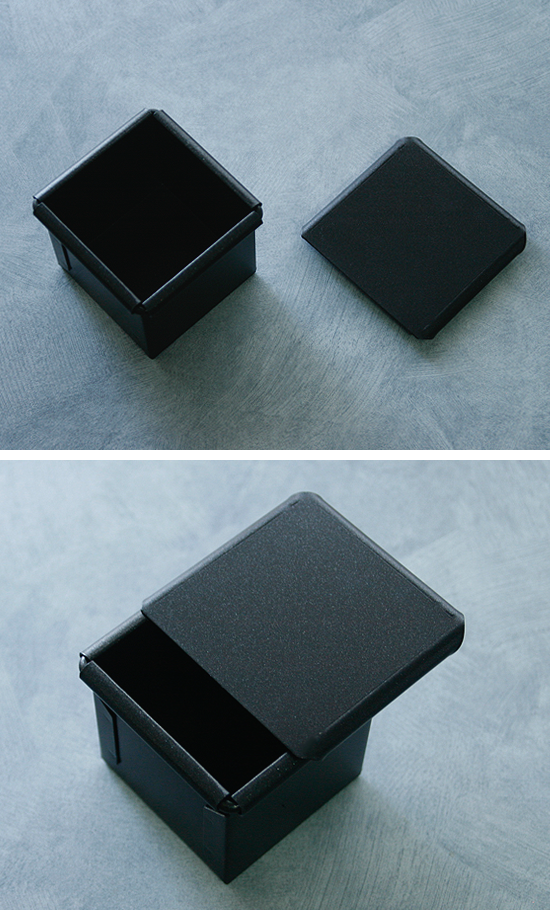 뚜껑이 있는 큐브형 식빵팬으로 네모모양의 미니 식빵을 구울 수 있구요,