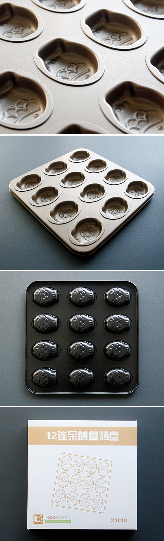 작고 오동통한 붕어모양의 논스틱코팅 빵틀로 잘 달라붙지 않습니다.