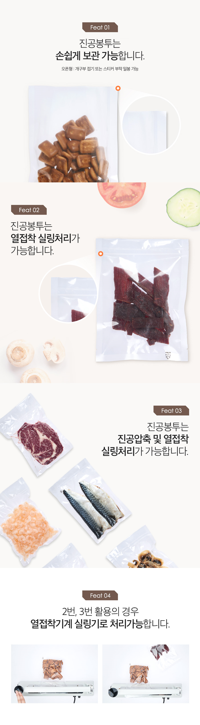 그 밖에 제품 크기에 맞춰 다양한 사이즈의 진공포장지가 마련돼 있어 더욱 간편합니다. -