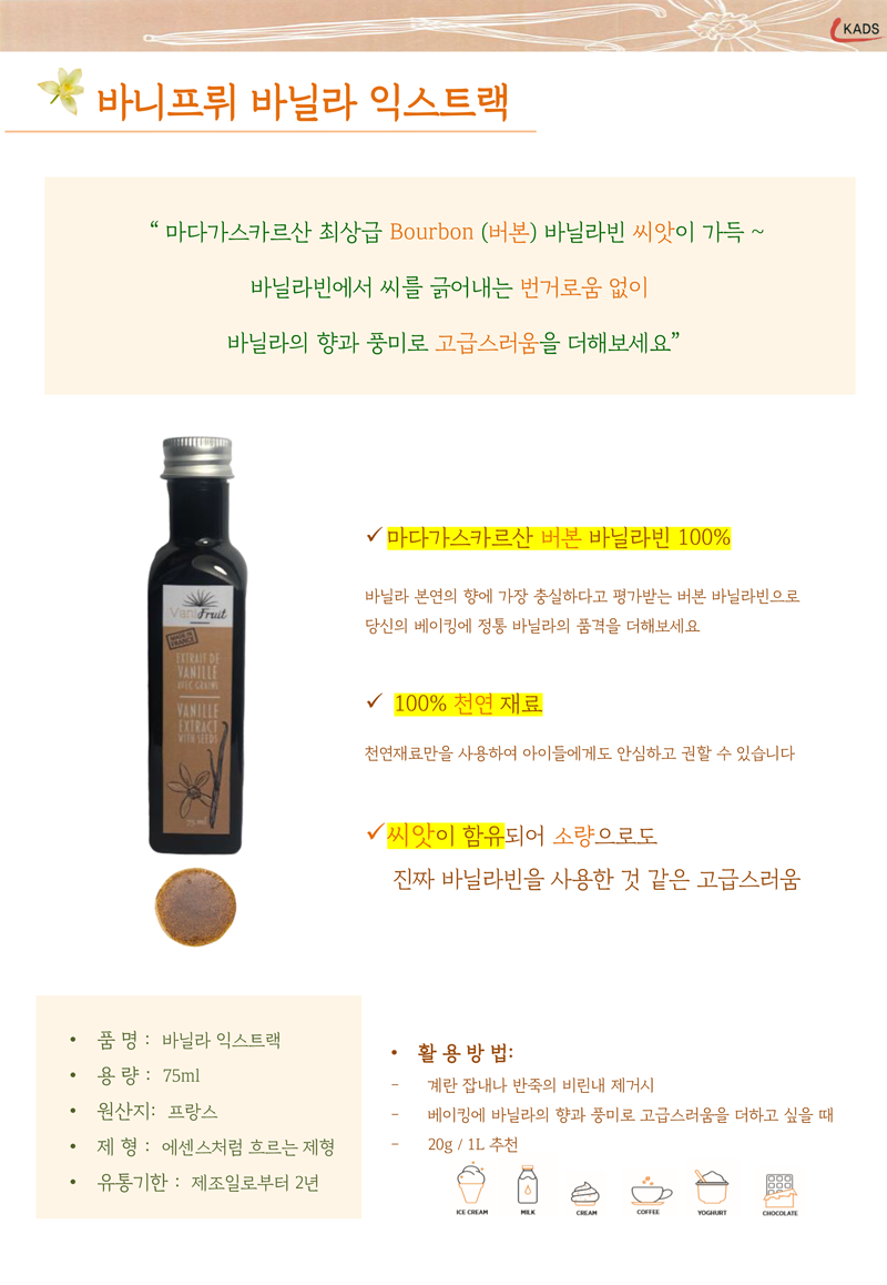 - 진짜 바닐라씨앗이 듬뿍 들어간 바닐라빈 익스트랙!