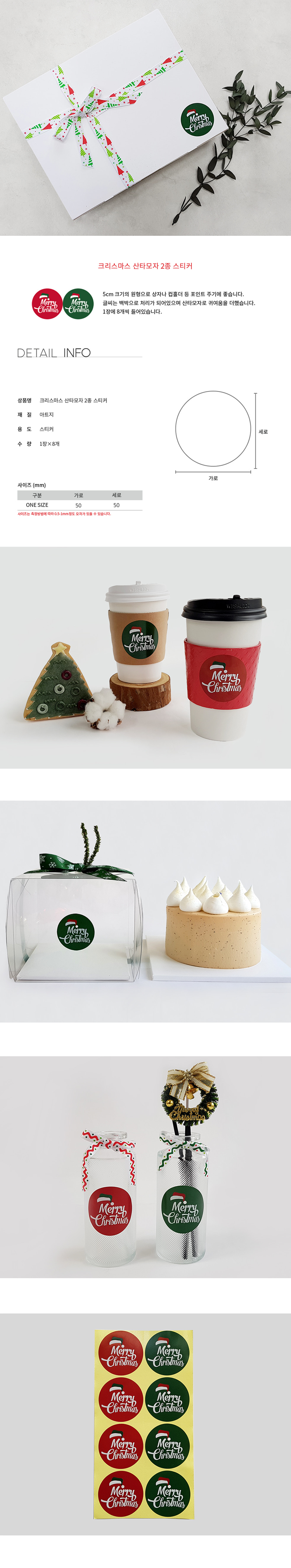 크리스마스 스티커(원형 산타모자,1장,8개)