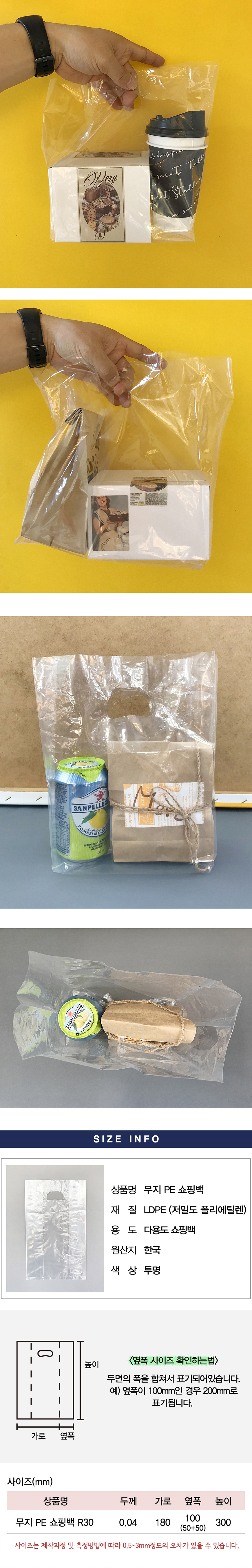 무인쇄로 깨끗하고 심플한 M자형 투명 비닐백입니다.