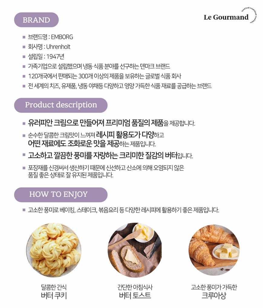 - 유럽 정통 프리미엄 브랜드 엠보그(EMBORG) 버터!