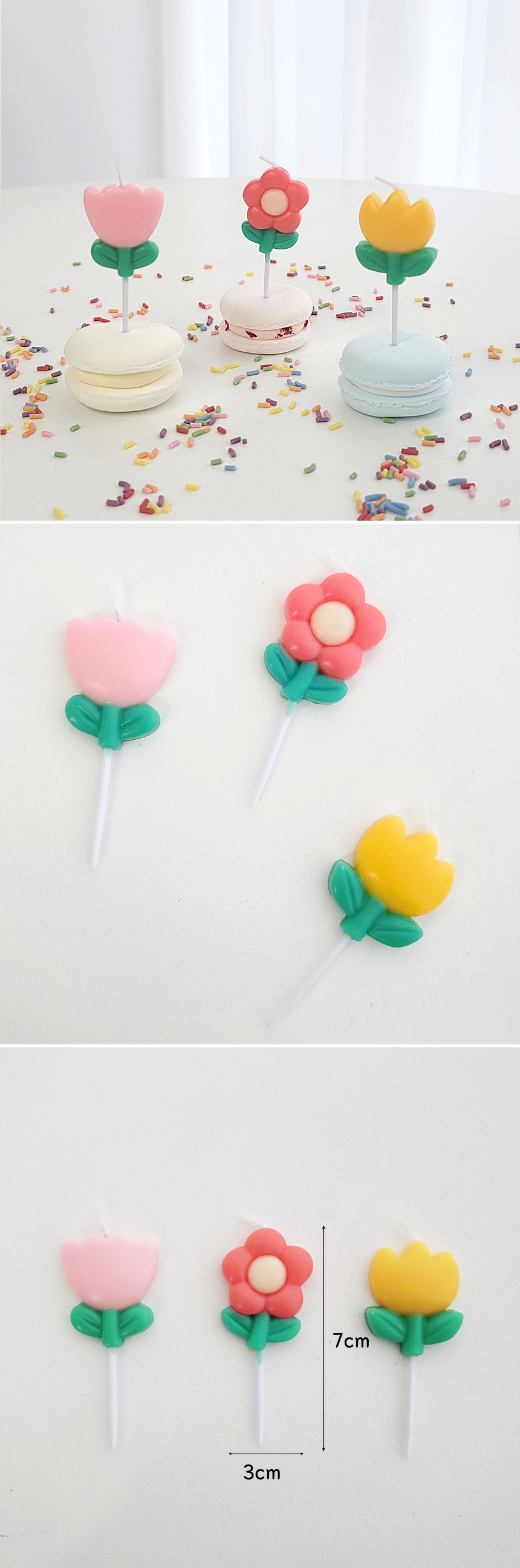 이 제품은 3가지 디자인의 꽃 모양 케이크 초입니다.