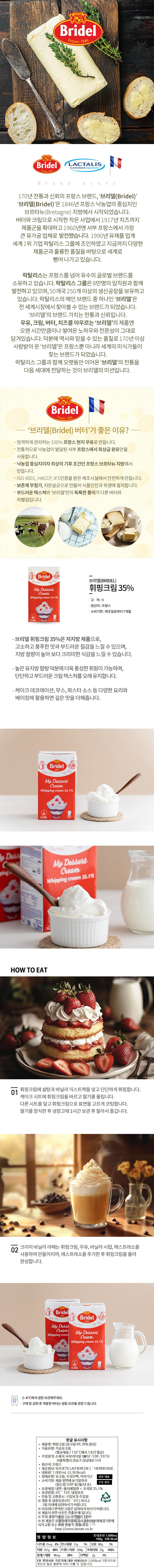 - 프랑스 최상급 원유로 만든 브리델 휘핑크림!