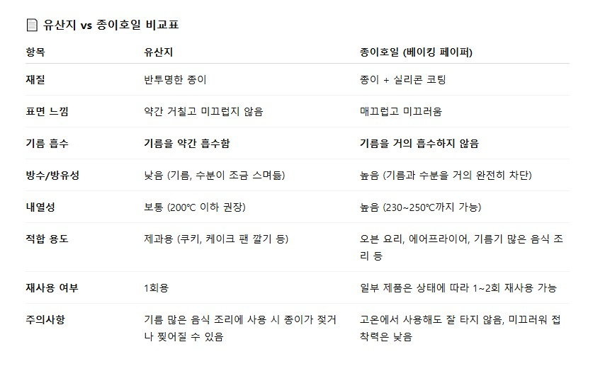 베이킹 외에도, 기름기가 많은 음식을 만들 때 바닥에 깔아주거나,