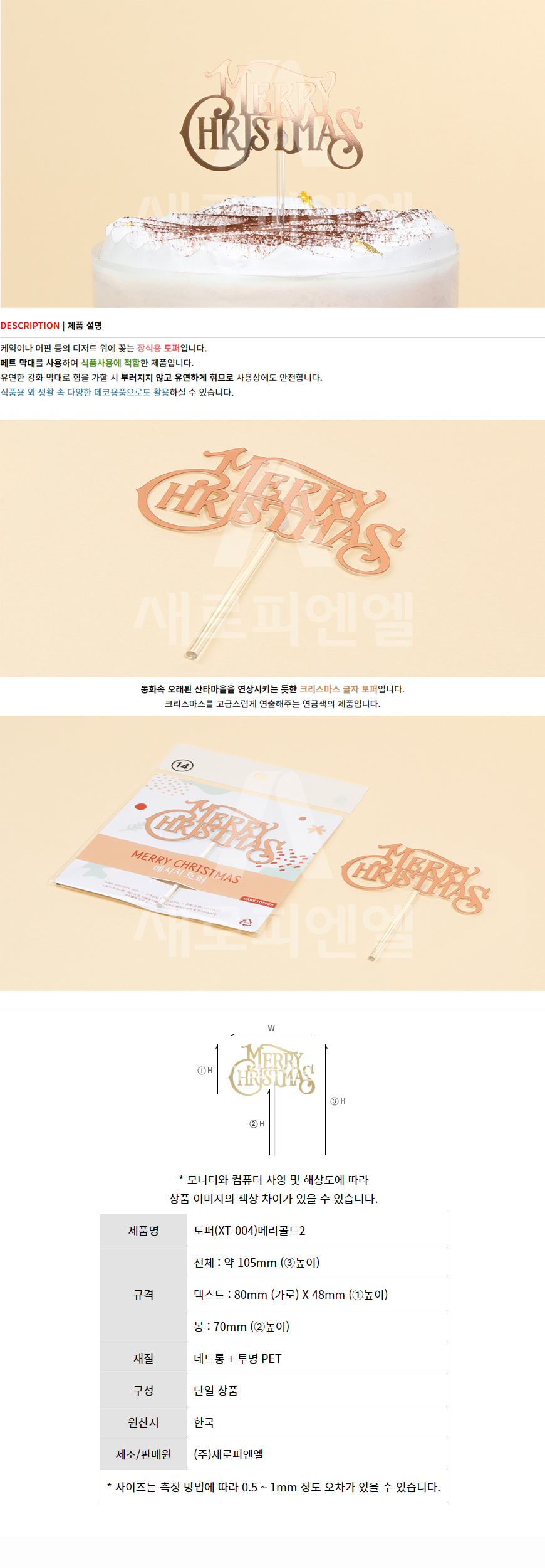 크리스마스 장식용 토퍼(필기체,골드)