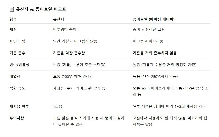 유산지를 사이즈에 맞춰 자르지 않고