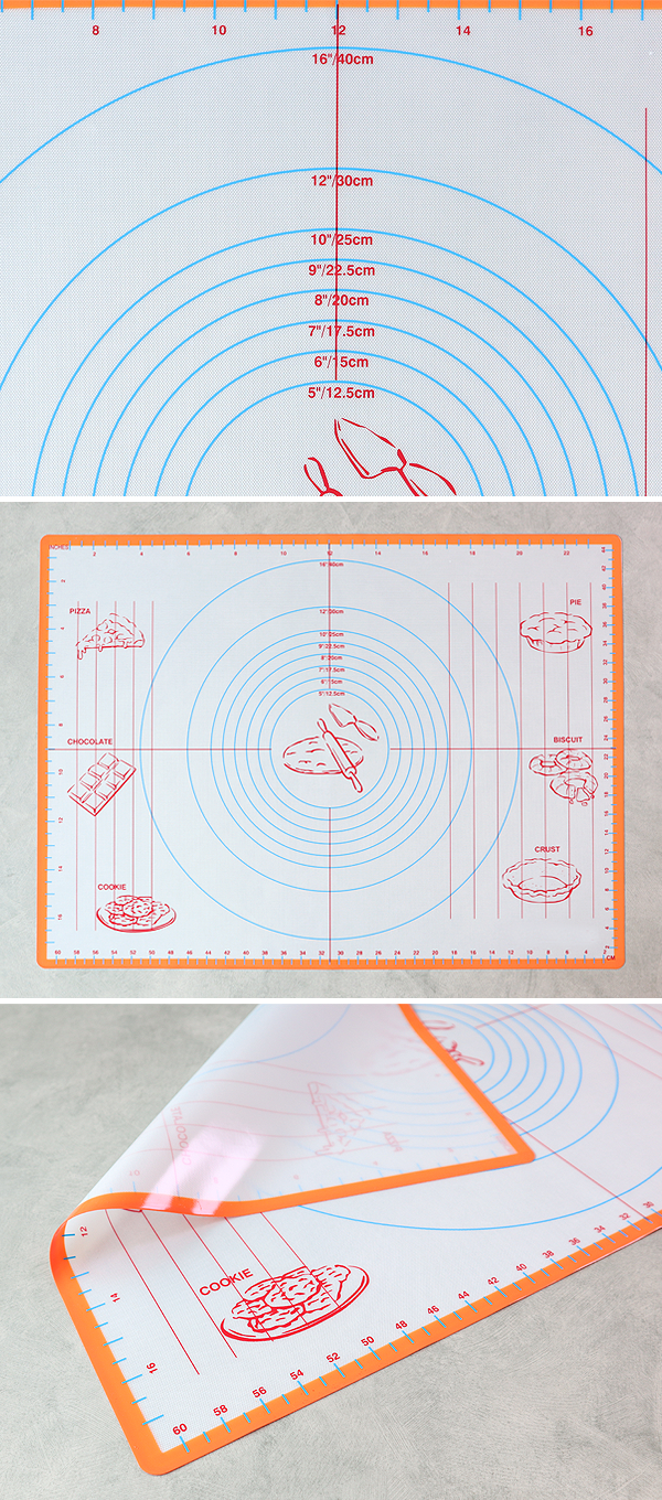 실리콘 재질의 패드로 작업대 위에 올려 반죽을 하거나 반죽을 밀어 펼 때 사용하며,