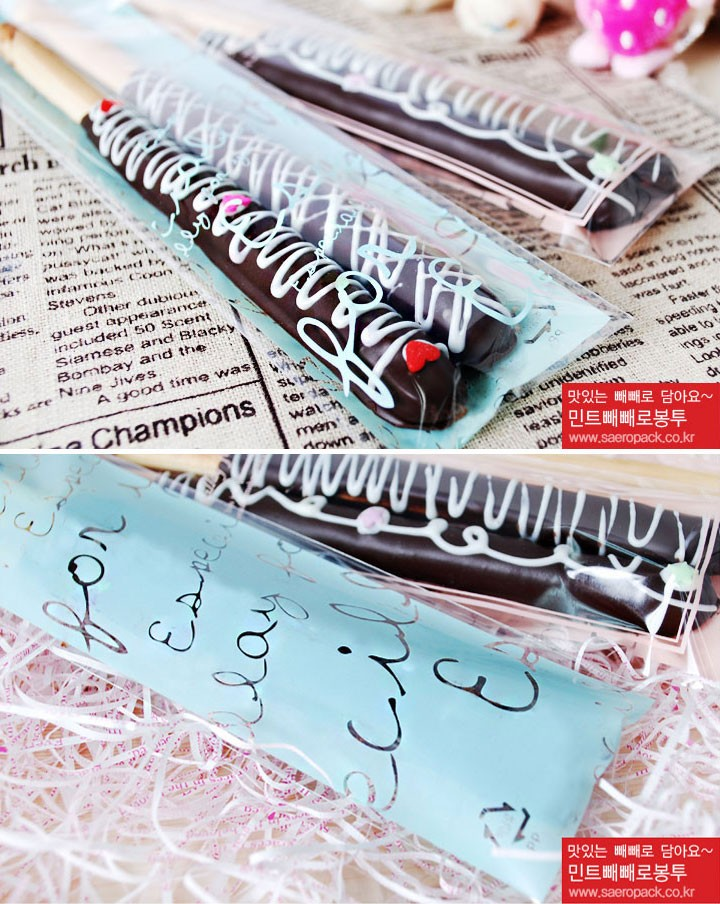 일반적으로 빼빼로데이용 작고 얇은 스틱제품을 담기에 적당한 제품입니다.