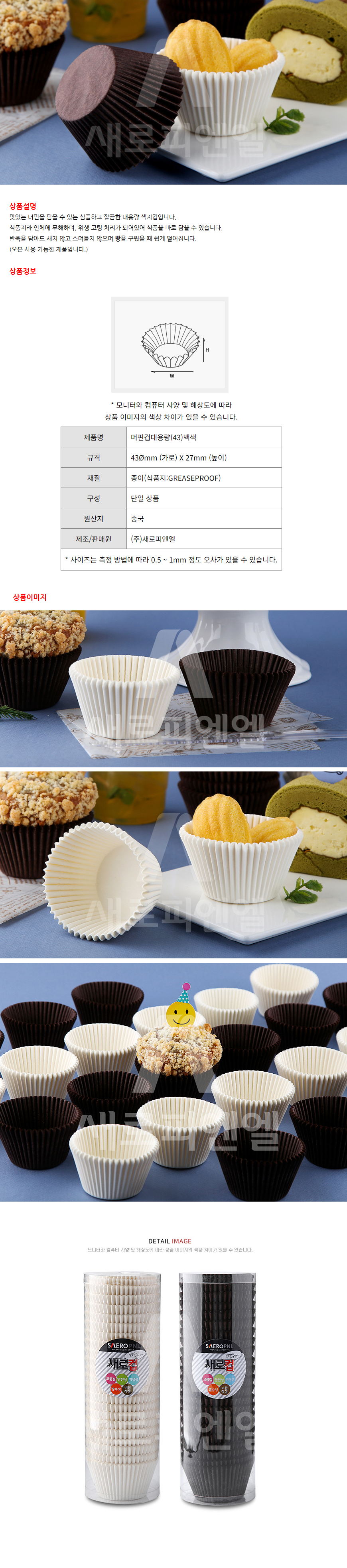 - 43mm 화이트 유산지 머핀컵!